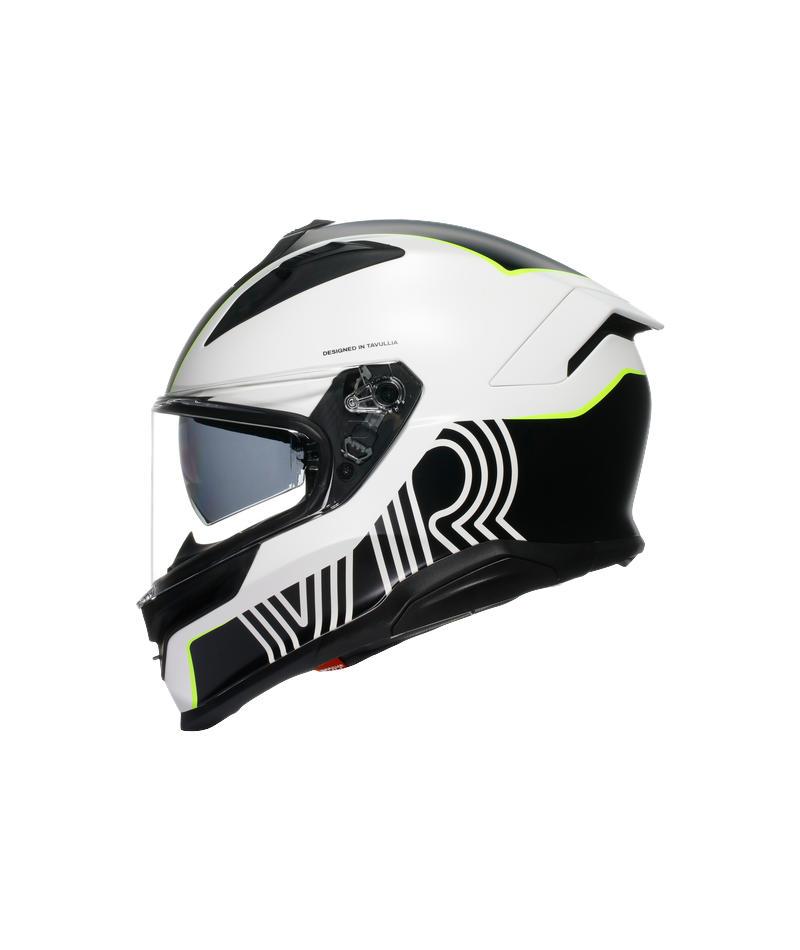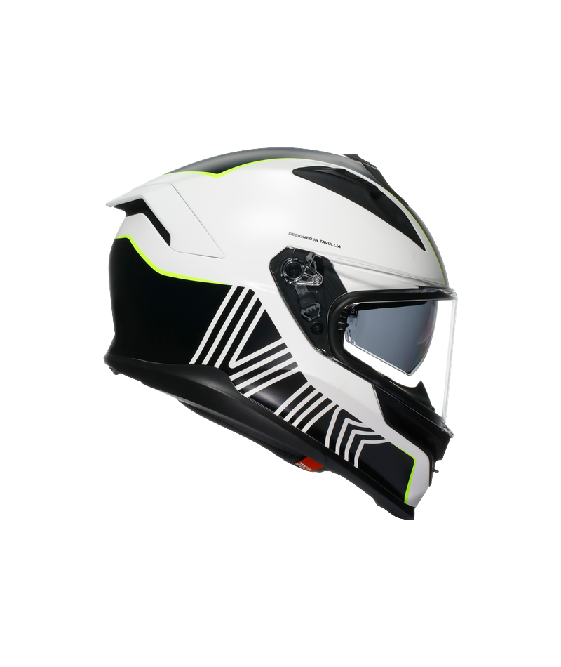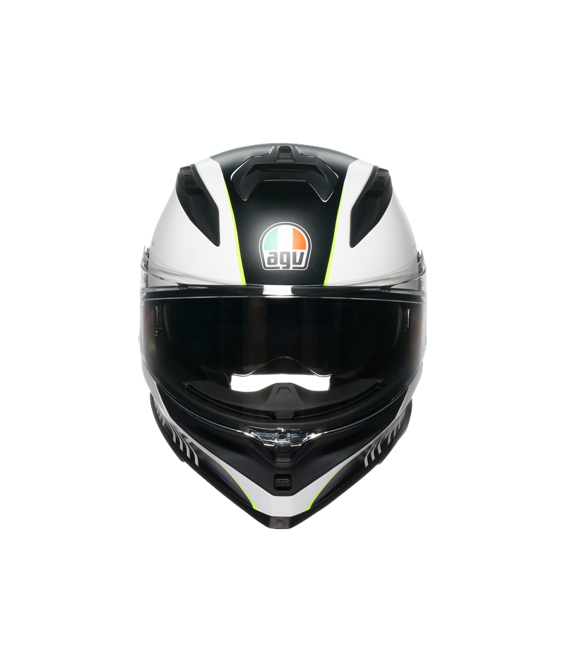 Ekstremalna ochrona w najbardziej kompaktowym kasku w swojej kategorii, przeznaczonym do użytku na każdej drodze. K7 to idealna równowaga między sportowym charakterem a turystyką, rozwinięta do maksimum. Odpowiedni do każdego rodzaju jazdy i wszystkich tras drogowych, ten kask oferuje najlepsze cechy świata sportowego i turystycznego, pomagając sprostać każdemu wyzwaniu na dwóch kółkach – od najtrudniejszych zakrętów po długie przygody w siodełku. Kompozytowa skorupa K7 zapewnia doskonałą ochronę, dzięki czemu jest to najbardziej kompaktowy kask pełnotwarzowy w swojej kategorii, zapewniający niezbędną lekkość przy wadze zaledwie 1450 g w najmniejszym rozmiarze skorupy. Dzięki trzem rozmiarom skorupy i czterem rozmiarom EPS, K7 idealnie dopasowuje się do każdego kierowcy, gwarantując komfort w każdej sytuacji na drodze. Poddany rygorystycznym testom zgodnie z protokołem projektowym AGV Extreme Safety, K7 z nawiązką spełnia wszystkie wymagania normy ECE22.06. Ponadto profil ochrony obojczyka, zaprojektowany przez AGV, znacznie zmniejsza ryzyko urazu obojczyka w przypadku uderzenia. To rozwiązanie stworzone z myślą o torze wyścigowym jest teraz dostępne dla każdego kierowcy poszukującego perfekcji. Zaprojektowany w tunelu aerodynamicznym kask K7 zapewnia maksymalną stabilność przy dużych prędkościach, idealną zarówno do jazdy sportowej, jak i turystycznej. Nowy mechanizm wizjera zapewnia płynną i niezawodną aktywację, a kompaktowy profil i większa ilość EPS w okolicy skroni zapewniają lepszą ochronę. K7 jest również wyposażony w opatentowany przez AGV system wentylacji Air Diffusion Crownpad Technology, który zapewnia najwyższy poziom wewnętrznej cyrkulacji powietrza, jaki kiedykolwiek osiągnięto w kasku. Dzięki połączeniu wyściółki korony i konstrukcji EPS technologia ta gwarantuje maksymalną wydajność wentylacji. Każdy szczegół, od wizjera po spojler, został opracowany z myślą o optymalizacji przepływu powietrza wewnątrz wyściółki korony, aby zapewnić najwyższy komfort jazdy. Wysokiej jakości wnętrze, wykonane z miękkiej tkaniny z powłoką DrySpeed, która szybko wchłania pot, zapewnia wyjątkowy komfort, pozwalając kierowcy skupić się wyłącznie na drodze. Odporna na zarysowania panoramiczna szybka Ultravision, z polem widzenia 190°, zapewnia kierowcy wyraźny i szeroki widok drogi oraz zagrożeń w każdej pozycji podczas jazdy. Wizjer, zintegrowana osłona przeciwsłoneczna i system przeciwmgielny Pinlock® 120 Max Vision™ gwarantują doskonałą widoczność w każdych warunkach. Ponadto kask K7 jest przystosowany do montażu w pełni zintegrowanego systemu interkomowego, zapewniającego prostą i bezpieczną komunikację.