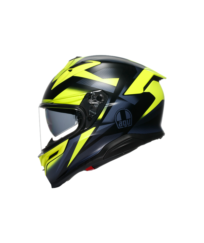 Ekstremalna ochrona w najbardziej kompaktowym kasku w swojej kategorii, przeznaczonym do użytku na każdej drodze. K7 to idealna równowaga między sportowym charakterem a turystyką, rozwinięta do maksimum. Odpowiedni do każdego rodzaju jazdy i wszystkich tras drogowych, ten kask oferuje najlepsze cechy świata sportowego i turystycznego, pomagając sprostać każdemu wyzwaniu na dwóch kółkach – od najtrudniejszych zakrętów po długie przygody w siodełku. Kompozytowa skorupa K7 zapewnia doskonałą ochronę, dzięki czemu jest to najbardziej kompaktowy kask pełnotwarzowy w swojej kategorii, zapewniający niezbędną lekkość przy wadze zaledwie 1450 g w najmniejszym rozmiarze skorupy. Dzięki trzem rozmiarom skorupy i czterem rozmiarom EPS, K7 idealnie dopasowuje się do każdego kierowcy, gwarantując komfort w każdej sytuacji na drodze. Poddany rygorystycznym testom zgodnie z protokołem projektowym AGV Extreme Safety, K7 z nawiązką spełnia wszystkie wymagania normy ECE22.06. Ponadto profil ochrony obojczyka, zaprojektowany przez AGV, znacznie zmniejsza ryzyko urazu obojczyka w przypadku uderzenia. To rozwiązanie stworzone z myślą o torze wyścigowym jest teraz dostępne dla każdego kierowcy poszukującego perfekcji. Zaprojektowany w tunelu aerodynamicznym kask K7 zapewnia maksymalną stabilność przy dużych prędkościach, idealną zarówno do jazdy sportowej, jak i turystycznej. Nowy mechanizm wizjera zapewnia płynną i niezawodną aktywację, a kompaktowy profil i większa ilość EPS w okolicy skroni zapewniają lepszą ochronę. K7 jest również wyposażony w opatentowany przez AGV system wentylacji Air Diffusion Crownpad Technology, który zapewnia najwyższy poziom wewnętrznej cyrkulacji powietrza, jaki kiedykolwiek osiągnięto w kasku. Dzięki połączeniu wyściółki korony i konstrukcji EPS technologia ta gwarantuje maksymalną wydajność wentylacji. Każdy szczegół, od wizjera po spojler, został opracowany z myślą o optymalizacji przepływu powietrza wewnątrz wyściółki korony, aby zapewnić najwyższy komfort jazdy. Wysokiej jakości wnętrze, wykonane z miękkiej tkaniny z powłoką DrySpeed, która szybko wchłania pot, zapewnia wyjątkowy komfort, pozwalając kierowcy skupić się wyłącznie na drodze. Odporna na zarysowania panoramiczna szybka Ultravision, z polem widzenia 190°, zapewnia kierowcy wyraźny i szeroki widok drogi oraz zagrożeń w każdej pozycji podczas jazdy. Wizjer, zintegrowana osłona przeciwsłoneczna i system przeciwmgielny Pinlock® 120 Max Vision™ gwarantują doskonałą widoczność w każdych warunkach. Ponadto kask K7 jest przystosowany do montażu w pełni zintegrowanego systemu interkomowego, zapewniającego prostą i bezpieczną komunikację.