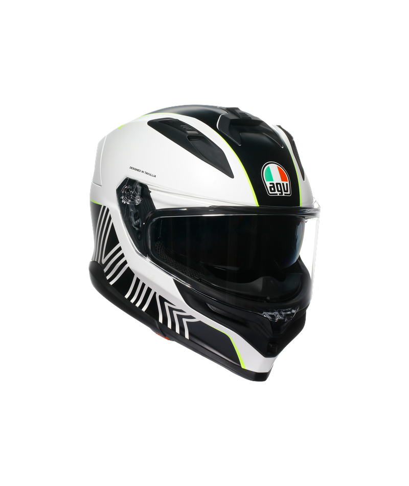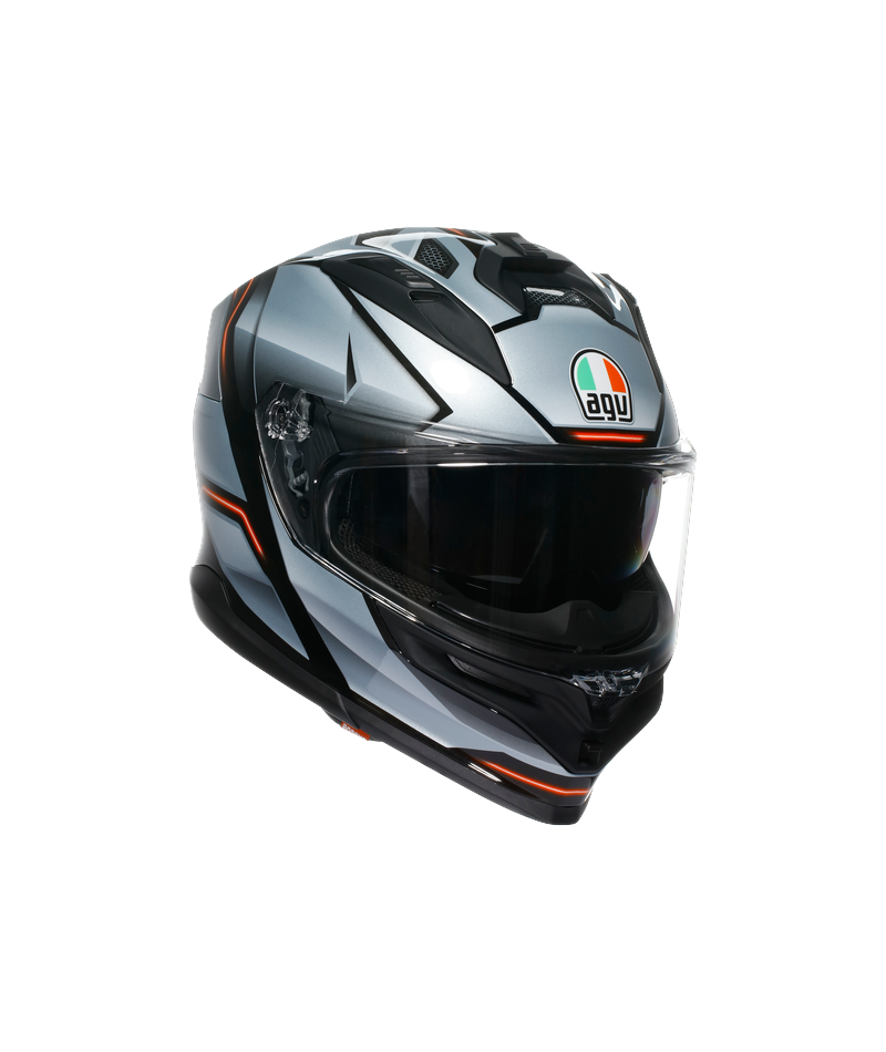 Ekstremalna ochrona w najbardziej kompaktowym kasku w swojej kategorii, przeznaczonym do użytku na każdej drodze. K7 to idealna równowaga między sportowym charakterem a turystyką, rozwinięta do maksimum. Odpowiedni do każdego rodzaju jazdy i wszystkich tras drogowych, ten kask oferuje najlepsze cechy świata sportowego i turystycznego, pomagając sprostać każdemu wyzwaniu na dwóch kółkach – od najtrudniejszych zakrętów po długie przygody w siodełku. Kompozytowa skorupa K7 zapewnia doskonałą ochronę, dzięki czemu jest to najbardziej kompaktowy kask pełnotwarzowy w swojej kategorii, zapewniający niezbędną lekkość przy wadze zaledwie 1450 g w najmniejszym rozmiarze skorupy. Dzięki trzem rozmiarom skorupy i czterem rozmiarom EPS, K7 idealnie dopasowuje się do każdego kierowcy, gwarantując komfort w każdej sytuacji na drodze. Poddany rygorystycznym testom zgodnie z protokołem projektowym AGV Extreme Safety, K7 z nawiązką spełnia wszystkie wymagania normy ECE22.06. Ponadto profil ochrony obojczyka, zaprojektowany przez AGV, znacznie zmniejsza ryzyko urazu obojczyka w przypadku uderzenia. To rozwiązanie stworzone z myślą o torze wyścigowym jest teraz dostępne dla każdego kierowcy poszukującego perfekcji. Zaprojektowany w tunelu aerodynamicznym kask K7 zapewnia maksymalną stabilność przy dużych prędkościach, idealną zarówno do jazdy sportowej, jak i turystycznej. Nowy mechanizm wizjera zapewnia płynną i niezawodną aktywację, a kompaktowy profil i większa ilość EPS w okolicy skroni zapewniają lepszą ochronę. K7 jest również wyposażony w opatentowany przez AGV system wentylacji Air Diffusion Crownpad Technology, który zapewnia najwyższy poziom wewnętrznej cyrkulacji powietrza, jaki kiedykolwiek osiągnięto w kasku. Dzięki połączeniu wyściółki korony i konstrukcji EPS technologia ta gwarantuje maksymalną wydajność wentylacji. Każdy szczegół, od wizjera po spojler, został opracowany z myślą o optymalizacji przepływu powietrza wewnątrz wyściółki korony, aby zapewnić najwyższy komfort jazdy. Wysokiej jakości wnętrze, wykonane z miękkiej tkaniny z powłoką DrySpeed, która szybko wchłania pot, zapewnia wyjątkowy komfort, pozwalając kierowcy skupić się wyłącznie na drodze. Odporna na zarysowania panoramiczna szybka Ultravision, z polem widzenia 190°, zapewnia kierowcy wyraźny i szeroki widok drogi oraz zagrożeń w każdej pozycji podczas jazdy. Wizjer, zintegrowana osłona przeciwsłoneczna i system przeciwmgielny Pinlock® 120 Max Vision™ gwarantują doskonałą widoczność w każdych warunkach. Ponadto kask K7 jest przystosowany do montażu w pełni zintegrowanego systemu interkomowego, zapewniającego prostą i bezpieczną komunikację.