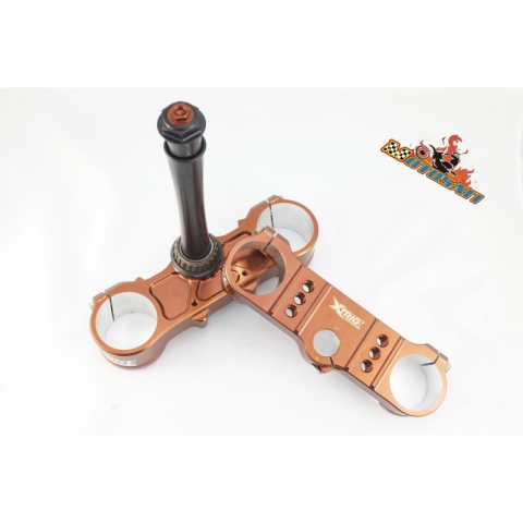 Potrójne zaciski zostały opracowane, zaprojektowane i opracowane przez najlepszych inżynierów. Wynik mówi sam za siebie. Wycięte z wysokiej jakości aluminium, są imponujące. Specjalne stoiska badawcze zostały opracowane w celu zapewnienia bezpiecznego i precyzyjnego zaciskania wideleca , gwarantując, że wydajność jest wyraźnie lepsza od produkcji seryjnej półki. Sytuacje drogowe są symulowane przy pomocy hamowni, dostarczając porównania z seryjnymi półkami. XTRIG zaprojektować półkę widelca, która pozwoli kierowcy korzystać aktywną korzyść z jazdy.