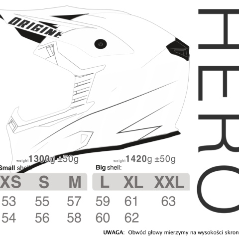 Kask Origine Hero MX to propozycja dla fanow offroadu. Sportowy i nowoczesny design sprawdzi się doskonale podczas jazdy w terenie. Wyposażony jest w daszek, co zapewnia wysoki poziom komfortu podczas jazdy w słoneczne dni i w wymagającym terenie. Kask posiada powłokę odbijającą promienie UV. Aby utrzymać kask w czystości posiada całkowicie wyjmowane i przystosowane do prania wnętrze. Hero posiada europejską homologację ECE 22-05 co gwarantuje wysoki poziom bezpieczeństwa.