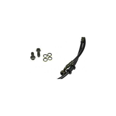 Oryginalny przewód hamulcowy Kayo przeznaczony do modelu AY70. Przewód posiada stalowy oplot, dzięki któremu jest bardzo odporny na uszkodzenia lub przetarcia w czasie eksploatacji. Komplet posiada śruby do zamocowania przewodu oraz o-ringi. Wymiary: Długość: 1300 mm
