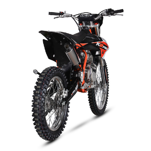 KAYO K2 PRO Enduro to nowa, ulepszona wersja popularnego modelu K2, stworzona z myślą o miłośnikach jazdy w terenie. To motocykl dla tych, którzy szukają połączenia niskich kosztów eksploatacji, prostoty obsługi oraz wydajności godnej bardziej sportowych maszyn. Nowy model został wyposażony w bardziej zaawansowane zawieszenie z systemem dźwigniowym w tylnym amortyzatorze, elektryczny rozrusznik oraz aluminiowe koła o standardowych dla enduro rozmiarach: 21” z przodu i 18” z tyłu.