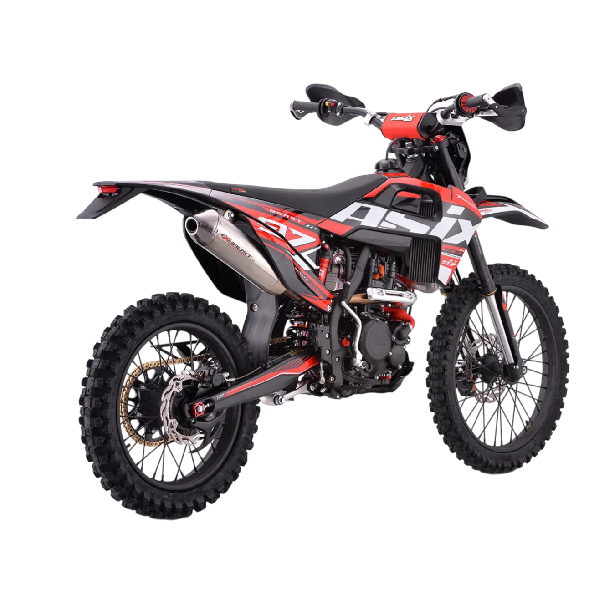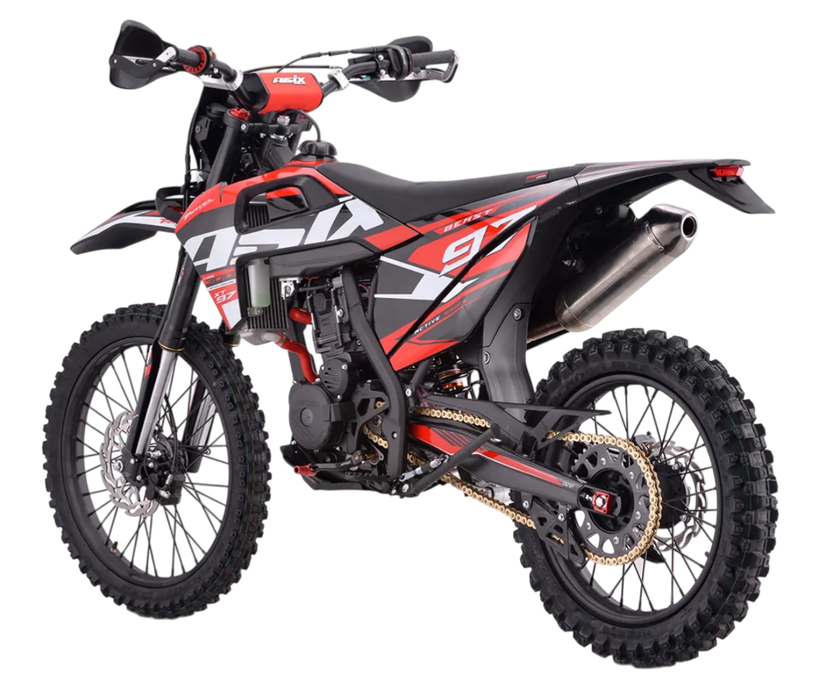 ASIX XT-97 został zaprojektowany z myślą o komforcie i funkcjonalności. Regulowane zawieszenie umożliwia dopasowanie charakterystyki jazdy do stylu użytkownika i warunków terenowych. Motocykl wyposażono w nowoczesne oświetlenie LED z przodu i z tyłu, co poprawia widoczność i bezpieczeństwo. Dodatkowe elementy, takie jak handbary z aluminiowym mocowaniem, chronią dłonie podczas jazdy w trudnym terenie.