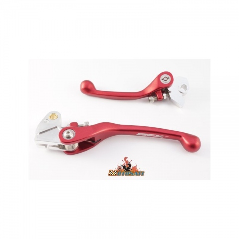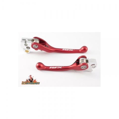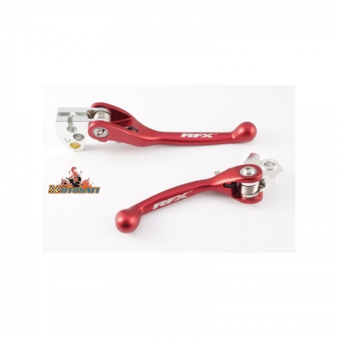 Pełni elastyczna dzwignia która obraca się na zewnątrz podczas wypadku.CNC kulowy koniec. Kolor anodowany do własnych modeli.Laserowo wygrawerowane logo RFX.Nierdzewne stalowe sprężyny, odporne na korozję.