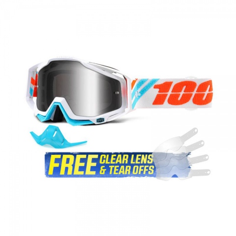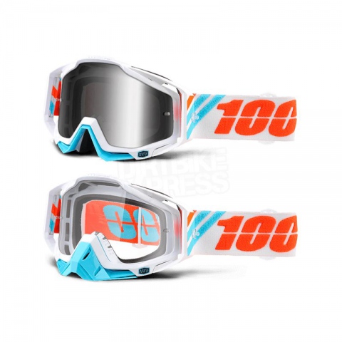 Zastosowana w modelu Racecraft przezroczysta szybka AntiFog skutecznie zapobiega osadzaniu pary na jej powierzchni, szybka ta pozwala również na zastosowanie zrywek. Największą zaletą gogli 100% jest zastosowanie uniwersalnego kształtu wewnętrznego ramki, dzięki czemu możemy dobrać szybki i zrywki (w komplecie 20 szt.) z innych modeli.
