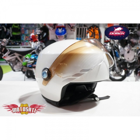 Powłoka zewnętrzna kasku wykonana z żywicy termoplastycznej. Zintegrowana osłona przeciwsłoneczna.