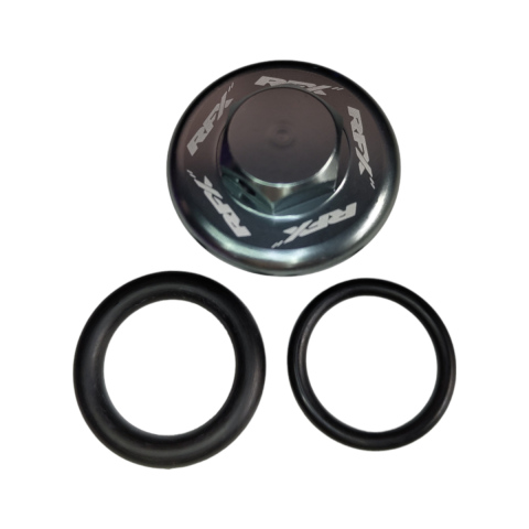 Korki wlewu RFX są również wyposażone w poręczną łeb sześciokątny 13 mm i otwór na drut blokujący, które pomagają zapewnić, że korek oleju pozostanie na swoim miejscu w ekstremalnych warunkach jazdy, ponieważ plastikowe korki są podatne na awarie