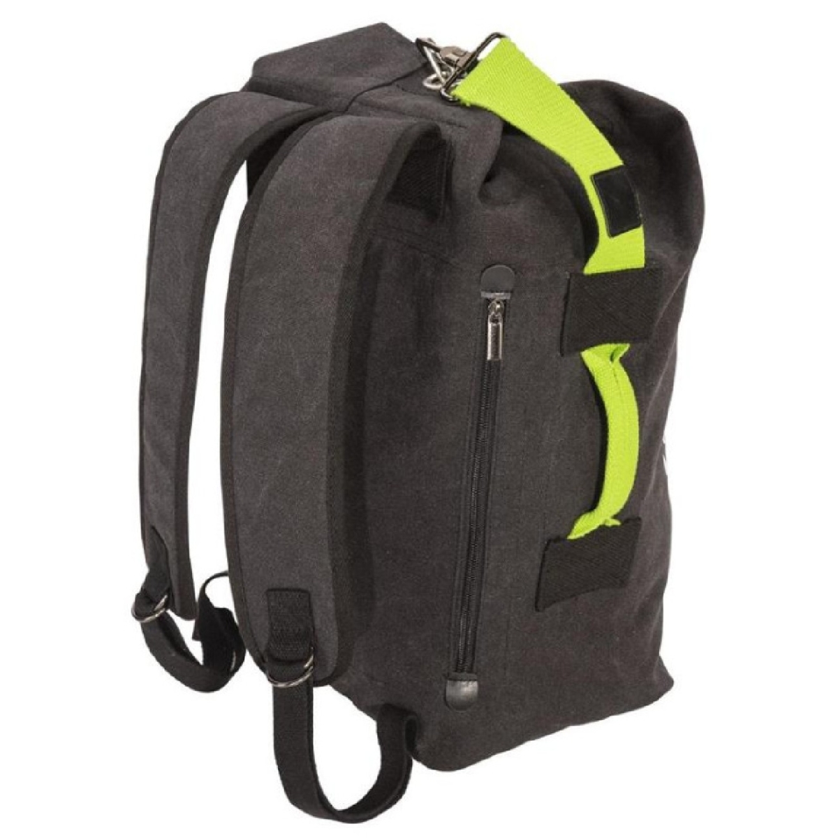 • Praktyczny plecak wykonany z mocnej tkaniny płóciennej, który może pełnić funkcję torby na ramię, gdyż posiada zarówno szelki jak i pasek naramienny