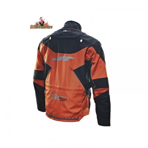 Kurtka JT Racing, dostępna w dwóch kolorach.Uszyta z wodoodpornego materiału który doskonale odprowadza wilgoć oraz utrzymuje całe ciało suchym podczas jazdy. Ochraniacze z TPR (guma termoplastyczna) zwiększają ochronę. Odpinane ramiona sprawiają, że kurtki można używać takżę jako kamizelki. Odpinany kołnierz pozwala na dopasowanie z ochraniaczem karku. Regulowana szerokość w pasie oraz mankietów. Wstawki"akordeon" na łokciach dzięki którym łatwo można przyjąć pozycję do jazdy bez ich rozciagania,dają komfort i wygodę.Liczne kieszenie do przechowywania. 9% Polyamide 91% Polyester