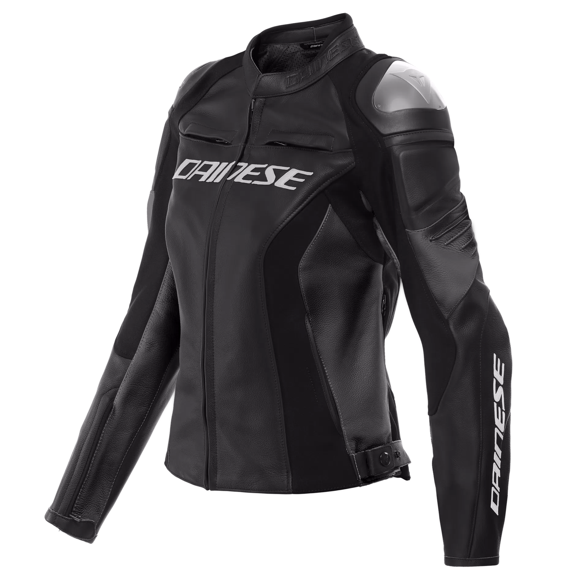 Racing 4 Lady to damska skórzana kurtka motocyklowa zaprojektowana z myślą o kobiecej sylwetce, która zapewnia wyjątkowy komfort i wszechstronność dzięki szeregowi detali, w tym dwuelastycznej tkaninie S1 i skórze Microelastic 2.0 zastosowanej w wysokiej jakości strukturze skóry bydlęcej Tutu. Dodatkowe cechy to regulowana talia i kołnierz oraz możliwość połączenia kurtki ze spodniami motocyklowymi za pomocą zamka błyskawicznego u dołu. Wszechstronność tej skórzanej kurtki motocyklowej wynika również z możliwości optymalnej regulacji temperatury za pomocą dwóch otworów wentylacyjnych umieszczonych na klatce piersiowej i dwóch wyciągów po bokach, które działają w synergii z oddychającą podszewką. Maksymalne bezpieczeństwo gwarantują certyfikowane zgodnie z normą EN 1621.1 kompozytowe ochraniacze na łokciach i ramionach, które są dodatkowo wzmocnione wymiennymi zewnętrznymi płytkami aluminiowymi – charakterystyczną technologią Dainese – zaprojektowanymi w celu wsparcia i ułatwienia poślizgu w razie upadku, unikając w ten sposób niebezpiecznego ryzyka przetoczenia się po asfalcie. Do kurtki Racing 4 Lady można dodać ochraniacze pleców, wykorzystując specjalne kieszenie. Kurtka motocyklowa dla kobiet Racing 4 Lady jest również wyposażona w dwie zewnętrzne i dwie wewnętrzne kieszenie do przechowywania drobnych przedmiotów w całkowitym bezpieczeństwie.