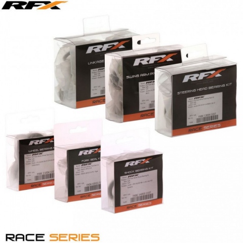 Zestawy łożysk z serii RFX Race dostarczane są w komplecie z wszystkimi łożyskami, tulejami i uszczelkami niezbędnymi do odbudowy motocykla lub podwozia ATV i zawieszenia.