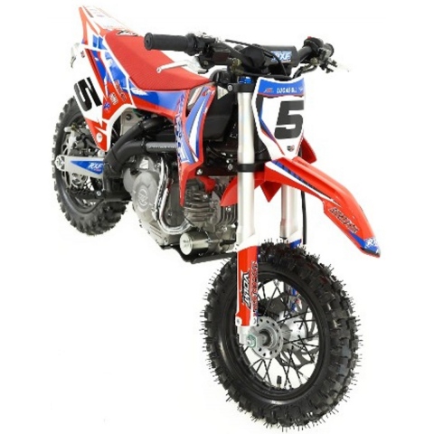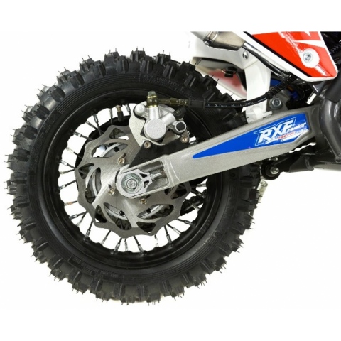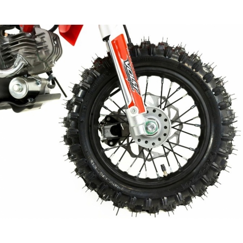 Przystosowany dla najmłodszych riderów. Idealny do nauki jazdy i doskonaleniu umiejętności. Napędzany silnikiem o pojemności 50cc. Posiada automatyczną skrzynie biegów , która pozwoli na doskonalenie umiejętności bez zbędnych czynności zmiany biegów czy operowania sprzęgłem. Posiada możliwość regulacji przepustnicy możemy dopasować moc do umiejętnosci dziecka. Posiada hydrauliczne hamulce tarczowe. Rozrusznik elektryczny który ułatwia odpalanie motocykla. Wyposażony w zawieszenie Volt Racing.