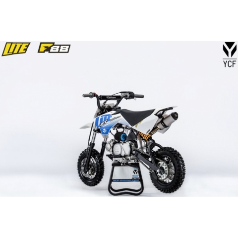 Napędzany silnikiem o pojemności 86 cm3 i mocy 5.5km. YCF posiada koła o średnicy 10' i wysokości siedziska na pozionie 72 cm. Ciężar motocykla nie sprawi problemu dziecku podczas ewentualnego przewrócenia. Posiada półautomatyczną skrzynie biegów co ułatwi dziecku dopracowywanie umiejętności. Również posiada możliwość regulacji rolgazu.