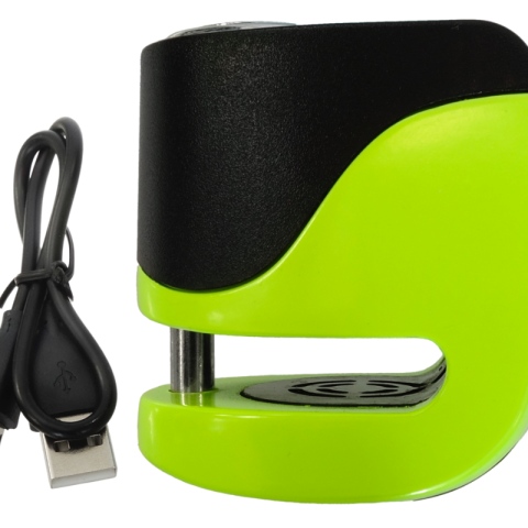 Blokada wykonana w całości ze stali nierdzewnej blokada tarczy hamulcowej wyposażona w alarm o natężeniu dźwięku 120 dB . Alarm aktywuje się automatycznie po założeniu na tarczę hamulcową. Wodoodporne podzespoły elektryczne gwarantują niezawodność w każdych warunkach atmosferycznych. Blokada posiada podwójny system zamykający, przez co jest podwójnie trudna do sforsowania lub zniszczenia. Zabezpieczenie blokuje koło bolcem, przez co uniemożliwia jazdę i ruch motocykla lub skutera.