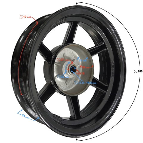 Felga tylna aluminiowa z hamulcem bębnowym przeznaczona do skutera Barton Galactic.