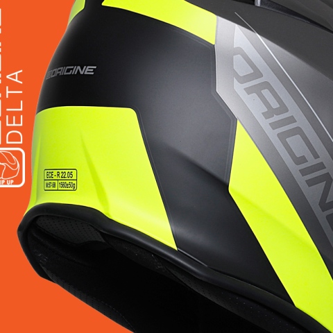 Kask Origine Delta sprawia, że każda podróż jest w pełni komfortowa i przyjemna. Nie tylko za sprawą podnoszonej szczęki czy blendy wysuwanej jednym ruchem ręki, ale dzięki zintegrowanemu systemowi Bluetooth. Nowy system komunikacji BLiNC™ Bluetooth gwarantuje doskonałą jakość dźwięku i pełen komfort zarówno podczas rozmów przez interkom ze swoim pasażerem czy innym motocyklistą jak również podczas korzystania z funkcji telefonu. Wykonywanie połączeń telefonicznych, słuchanie muzyki czy otrzymywanie poleceń nawigacji jest niezwykle przyjemne dzięki systemowi cyfrowej redukcji szumu, który skutecznie zmniejsza zakłócenia spowodowane wiatrem czy dźwiękiem silnika. Aby zminimalizować zjawisko parowania wizjera kask został wyposażony w deflektor natomiast szybka przygotowana jest pod założenie Pinlocka. Komfort podczas jazdy z zamkniętą szczęką w upalny dzień zapewniają trzy zintegrowane wloty powietrza, które można regulować. Mikrometryczne zapięcie pozwala w bardzo łatwy sposób odpiąć i zapiąć kask także w rękawiczkach motocyklowych. Aby utrzymać kask w czystości posiada całkowicie wyjmowane i przystosowane do prania wnętrze. Delta posiada europejską homologację ECE 22-05 co gwarantuje wysoki poziom bezpieczeństwa.