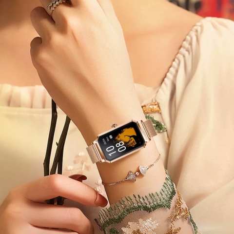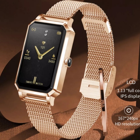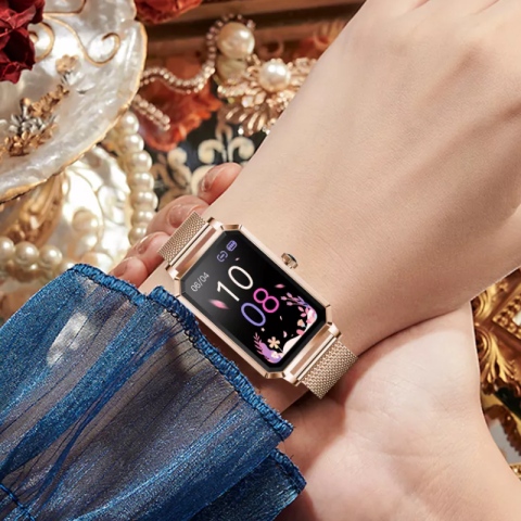 - kolor: różowe złoto ( koperta ) różowe złoto ( pasek ) + pasek silikonowy różowy