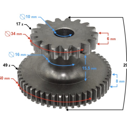 Zębatka pośrednia rozrusznika do skutera
