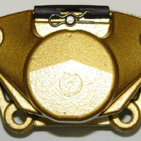 Wysokiej jakości zamiennik przedniego zacisku hamulcowego GRIMECA sotoswanego w skuterach Malaguti F12 oraz F15. Dwutłoczkowy zacisk został w całości wykonany z aluminium i pomalowany proszkowo. W komplecie znajdują się klocki hamulcowe.