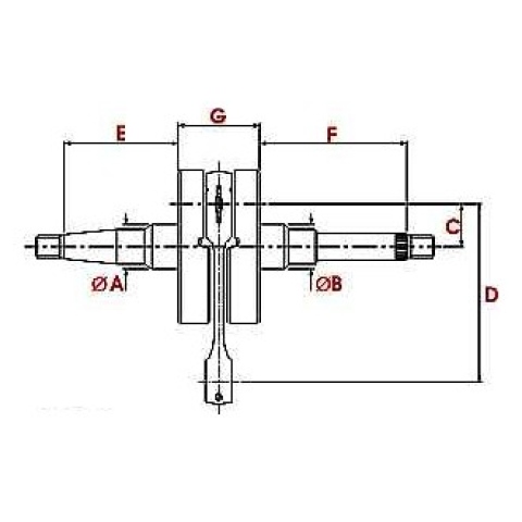Tuningowy wał korbowy do skuterów napędzanych silnikiem Minarelli Jog 3KJ z cylindrem poziomym o pojemności 50 / 70 ccm.