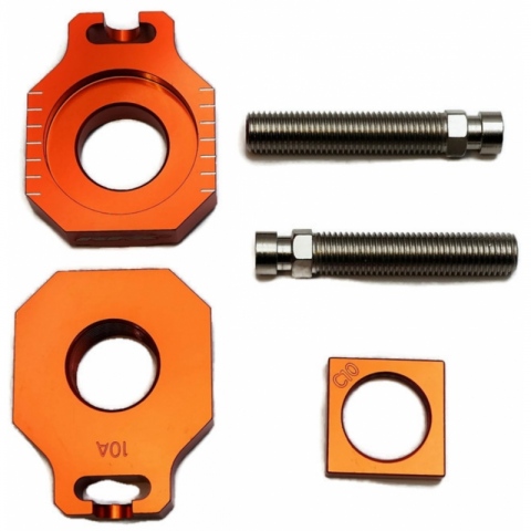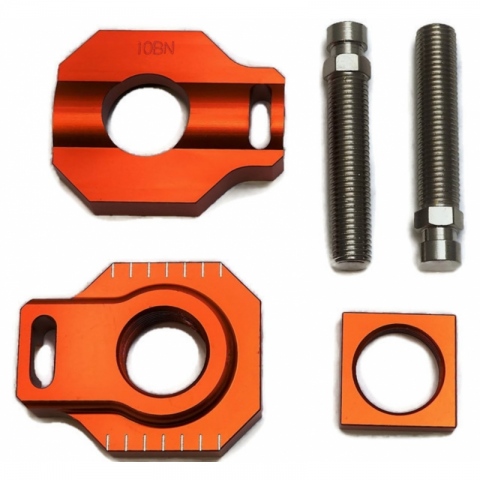 Wyrównaj kwadrat koła za pomocą bloków osi i wyreguluj, aby ustawić prawidłowe napięcie łańcucha (sprawdź w instrukcji obsługi, czy napięcie jest prawidłowe)