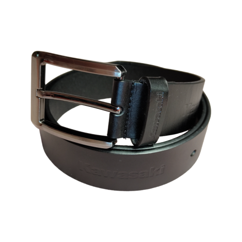 • Czarny pasek ze srebrną klamrą i logiem kawasaki