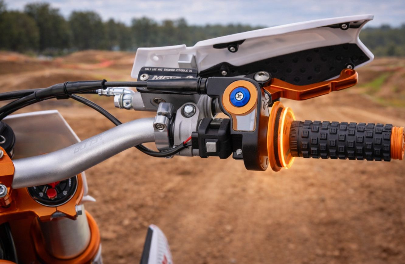 Takie rozwiązanie znacząco zmniejsza ryzyko złamania klamek przy przewróceniu motocykla, zwiększając trwałość i niezawodność sprzętu w warunkach off-roadowych.