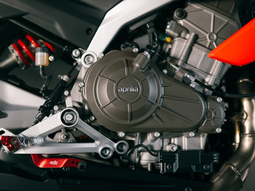 Aprilia Tuono 457 napędzana jest nowoczesnym, dwucylindrowym silnikiem o pojemności 457 cm³, który pełni funkcję elementu nośnego konstrukcji. Jednostka została celowo wyeksponowana, podkreślając techniczny charakter motocykla i jego sportowe DNA. Chłodzony cieczą silnik generuje maksymalną moc 35 kW (47,6 KM) przy 9400 obr./min, czyli najwyższą dopuszczalną dla kategorii prawa jazdy A2.