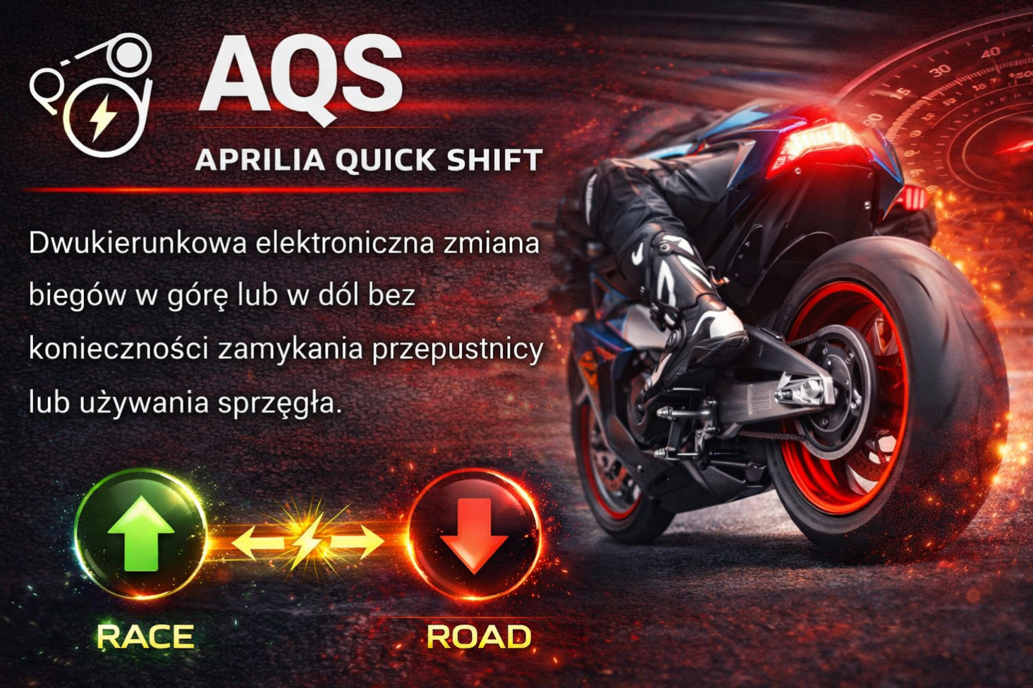 • AQS (Aprilia Quick Shift) – dwukierunkowa zmiana biegów bez sprzęgła,