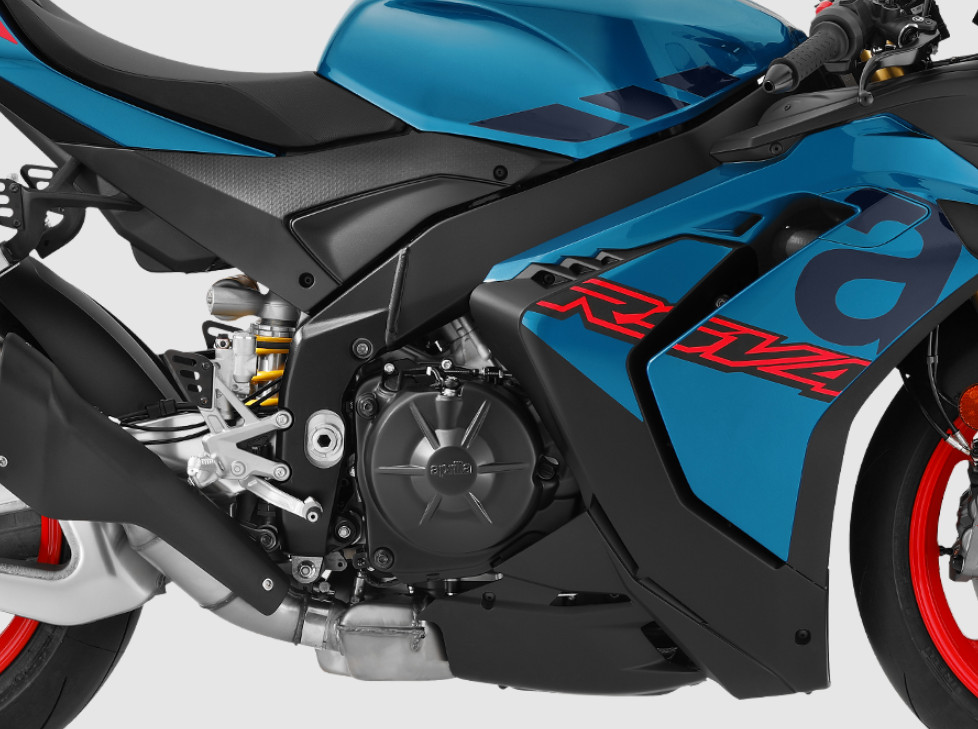 Centralnym punktem Aprilia RSV4 jest legendarny, czterocylindrowy silnik w układzie V o kącie rozwarcia cylindrów 65°. To kompaktowa i wyjątkowo zaawansowana konstrukcja, która łączy wyścigowe DNA z homologacją drogową zgodną z normą Euro 5+.