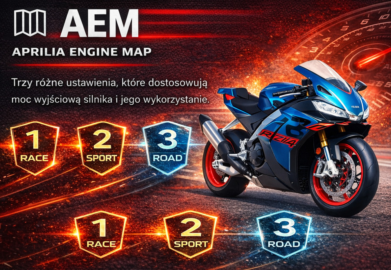• AEM (Aprilia Engine Map) – mapy zapłonu dopasowane do trybu jazdy,