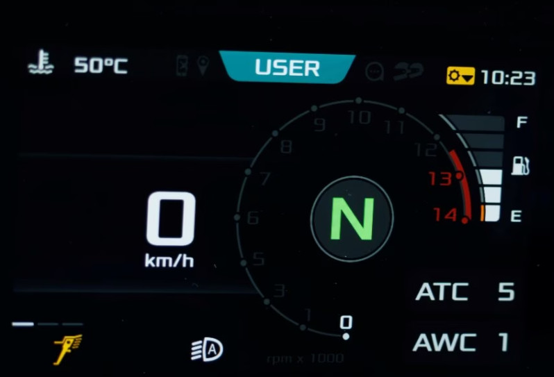 Nowoczesny, 5-calowy wyświetlacz TFT w Aprilia RSV4 zapewnia szybki i czytelny dostęp do wszystkich kluczowych parametrów jazdy – od ustawień systemów wspomagających po aktywny tryb pracy silnika. Interfejs został zaprojektowany z myślą o intuicyjnej obsłudze, tak aby zmiana konfiguracji była możliwa bez odrywania uwagi od drogi czy toru.