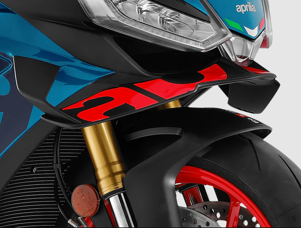 Zintegrowany układ wingletów poprawia precyzję pokonywania zakrętów, ogranicza unoszenie przedniego koła i stabilizuje motocykl przy gwałtownym otwarciu przepustnicy. Dodatkowo nolder w górnej części owiewki optymalizuje przepływ powietrza, redukując turbulencje między zbiornikiem paliwa a nogami kierowcy. Rozwiązanie to nie tylko poprawia aerodynamikę, ale również zwiększa komfort podczas dynamicznej jazdy.