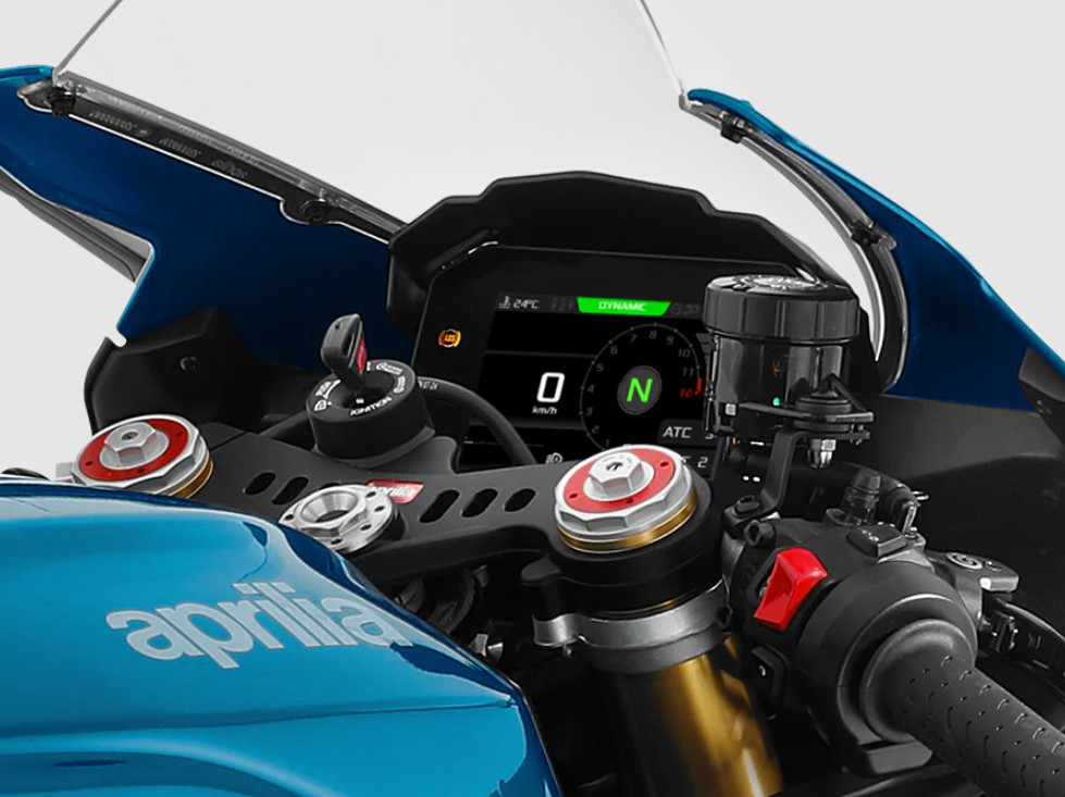 Elektroniczna przepustnica Ride-by-Wire współpracuje z sześcioosiowym czujnikiem IMU, tworząc precyzyjny system kontroli parametrów jazdy w czasie rzeczywistym. Całość działa w synergii z zaawansowanym pakietem a-PRC (Aprilia Performance Ride Control), który dynamicznie dostosowuje charakterystykę motocykla do stylu jazdy oraz warunków na drodze lub torze.