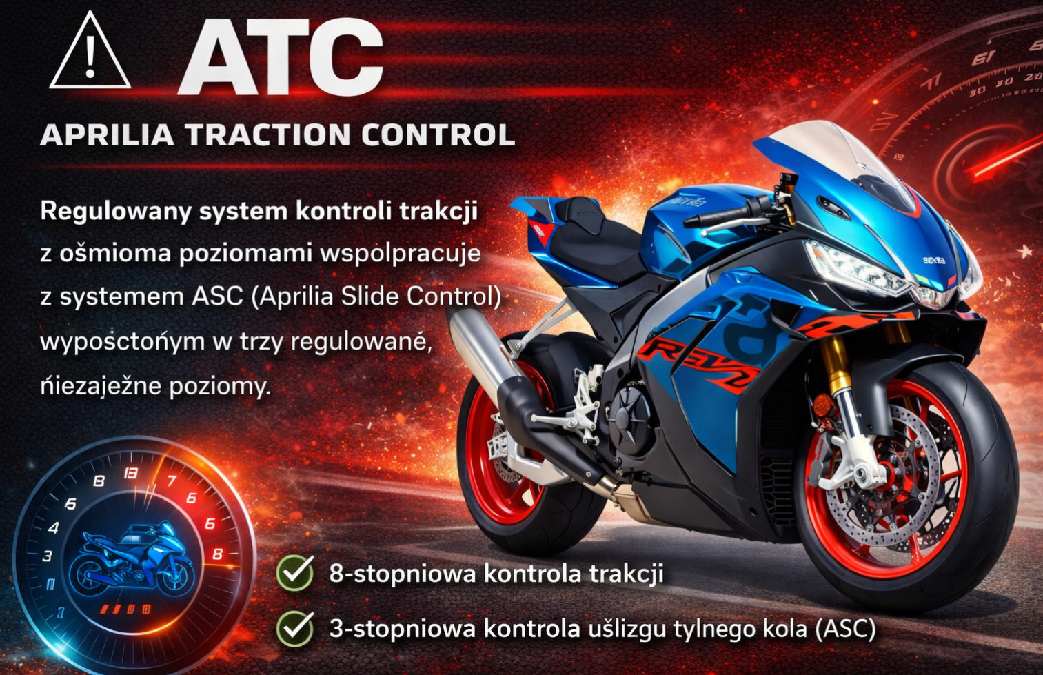 • ATC (Aprilia Traction Control) – wielostopniowa kontrola trakcji,
