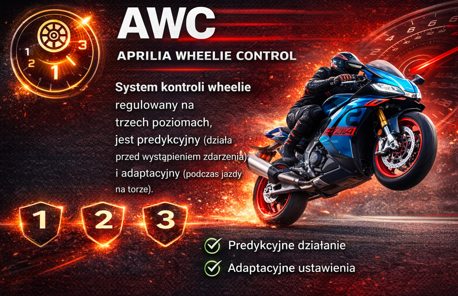 • AWC (Aprilia Wheelie Control) – kontrola unoszenia przedniego koła,
