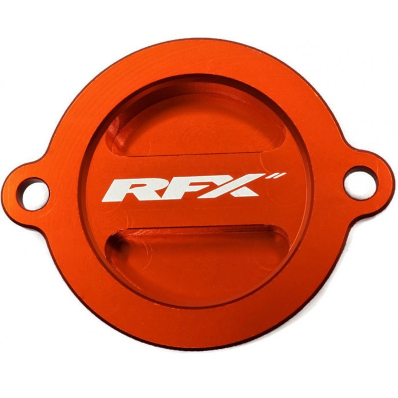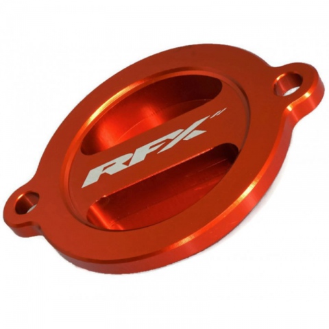 Pro Series Oil Filter Covers-Pokrywa,korek filtra oleju wykonany jest z aluminium 7075-T6 o zwiększonej stabilności(trwałości) wymiarowej wysokiej temperatury i ciśnienia. Pokrywki te dysponują zwiększoną konstrukcją przepływu dla lepszej cyrkulacji oleju. Produkty RFX są testowane i używane przez najlepsze brytyjskie zespoły Motocrossowe