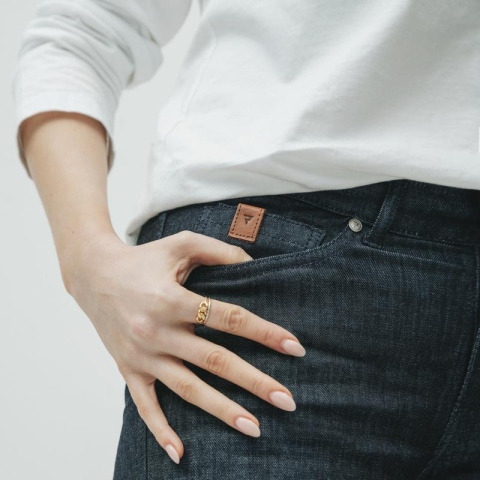 Materiał z dodatkiem elastanu gwarantuje optymalne dopasowanie i wygodę.