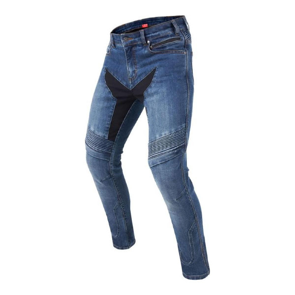Materiał z dodatkiem elastanu gwarantuje optymalne dopasowanie i wygodę, a wstawki z materiału 4-way stretch w kroku ułatwiają wsiadanie na motocykl.