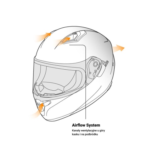 Dobrze wentylowany kask motocyklowy o szerokim kącie widzenia. Ma zapięcie mikrometryczne i homologację ECE. Wyposażony w blendę przeciwsłoneczną i odporną na zarysowania szybę o łatwym i szybkim w obsłudze systemie demontażu. Ma wypinane poduszki policzkowe, a także wyściółkę, którą można prać.