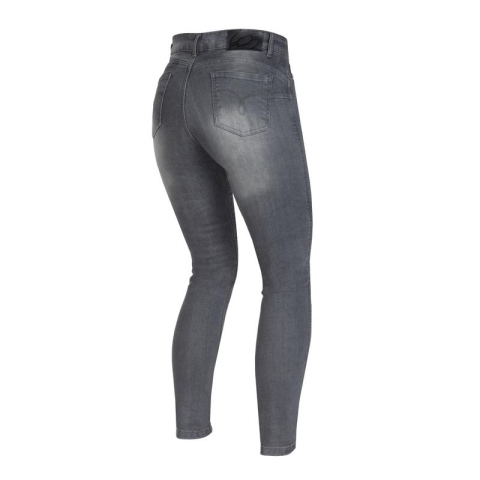 Jeansy motocyklowe Ozone Striker Lady zostały uszyte z myślą o kobiecej sylwetce, którą podkreśla wysoki stan i wygodny krój typu Slim Fit. Dodatek elastanu zapewnia z kolei swobodę ruchów. Ozone Striker Lady pasują do miejskich kurtek motocyklowych – zarówno tekstylnych, jak i skórzanych. Bezpieczeństwo zapewniają ochraniacze kolan Flying Bats CE-level 2 i aramidowa podszewka sięgająca do połowy łydki. Jeansy Ozone Striker Lady są trwałe, bezpieczne i odrobinę rozciągliwe, co poprawia komfort ich użytkowania.