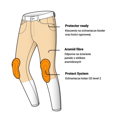 O Twoje bezpieczeństwo dbają: ochraniacze kolan Flying Bats CE-level 2 oraz panele z wytrzymałego aramidu. Dzięki temu, że ochraniacze są ultracienkie spodnie można nosić na co dzień, np. po dojeździe do pracy czy na uczelnię.