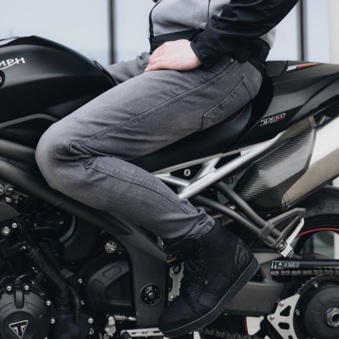 Jeansy motocyklowe Ozone Striker są dostępne w dwóch wariantach kroju – slimfit i regular – dzięki czemu pasują do wielu typów sylwetki. Dodatek elastanu zapewnia z kolei swobodę ruchów. Dzięki klasycznemu krojowi dobrze wyglądają z miejskimi kurtkami motocyklowymi – zarówno tekstylnymi, jak i skórzanymi. Bezpieczeństwo zapewniają ochraniacze kolan Flying Bats CE-level 2 i aramidowa podszewka sięgająca do połowy łydki. Jeansy Ozone Striker są więc trwałe, bezpieczne i odrobinę rozciągliwe, co poprawia komfort ich użytkowania.