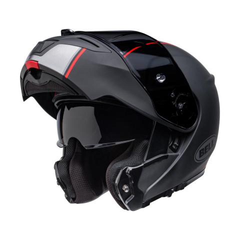 Kask motocyklowy Bell SRT Modular to turystyczny model o agresywnym wyglądzie. Skorupa wykonana z włókna szklanego czyni ją niezwykle lekką. Za optymalną wentylację odpowiadają regulowane wloty powietrza. Kask Bell STR ma szerokie pole widzenia dzięki systemowi Panovision oraz Pinlock w zestawie.