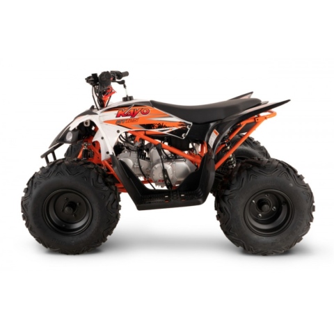 Quad Kayo AT125 to czterokołowy pojazd o sportowym charakterze i agresywnym wyglądzie, który jest przeznaczony dla dzieci. Ten model spodoba się niejednemu młodemu kierowcy! Quad AT125 został zaprojektowany tak, aby był w pełni bezpieczny. Specjalne zawieszenie AT125, które pod wpływem obciążenia sprawia, że quad zyskuje na równowadze. Wytrzymała rama wykonana z elementów rurowych oraz stalowych. Wytrzymały tylny amortyzator, który niweluje wibracje silnika. Quad AT125 jest bardzo łatwy w obsłudze. Ważnym elementem jest przycisk szybkiego zatrzymania w razie wypadku.