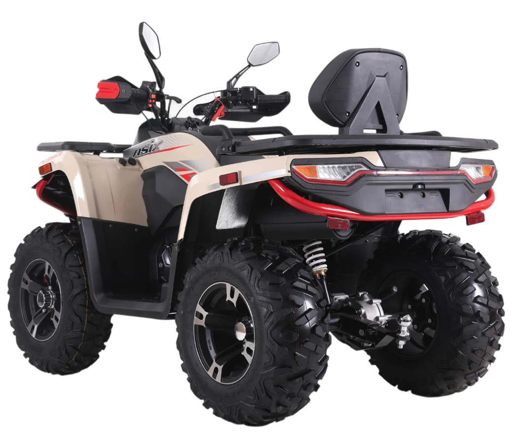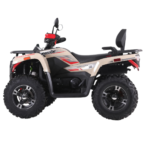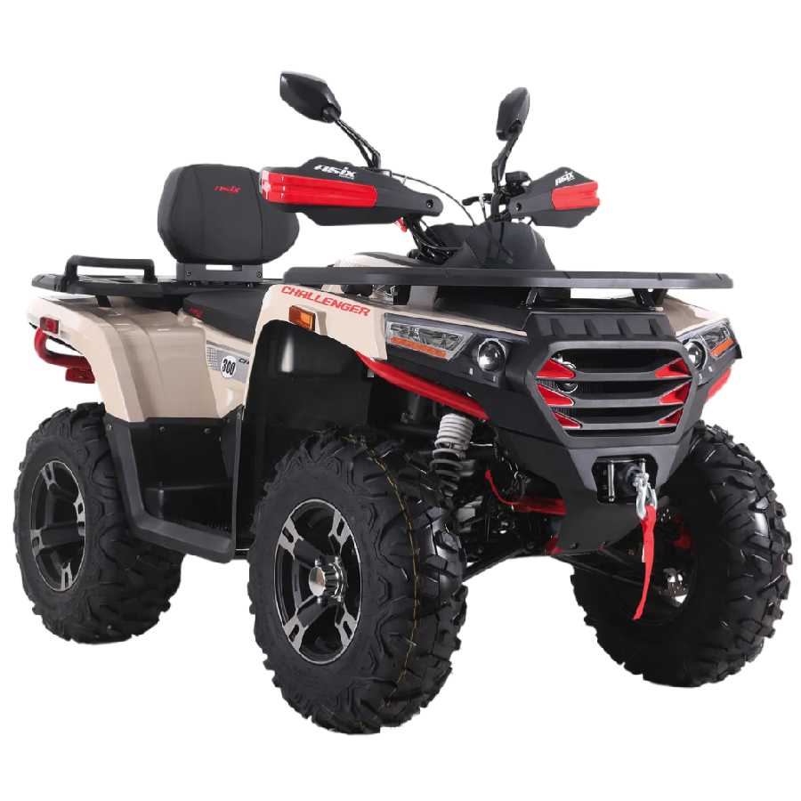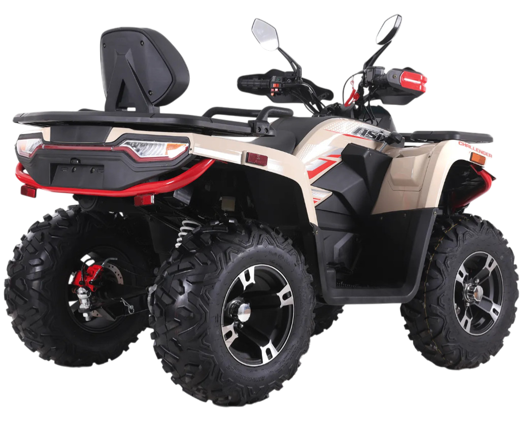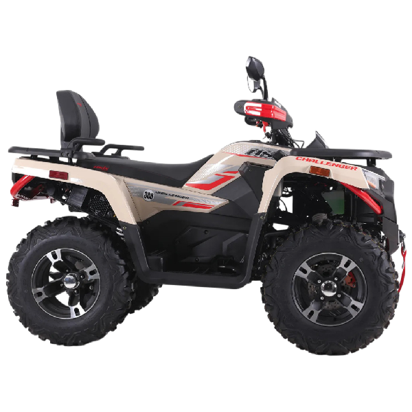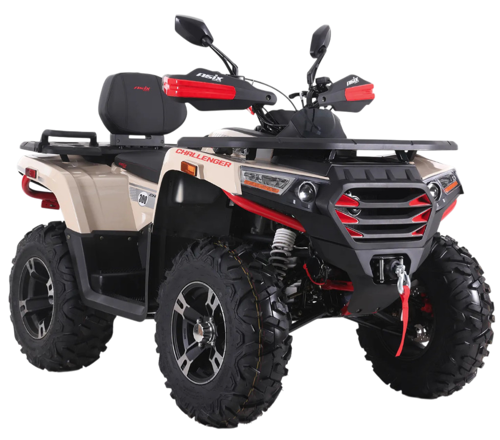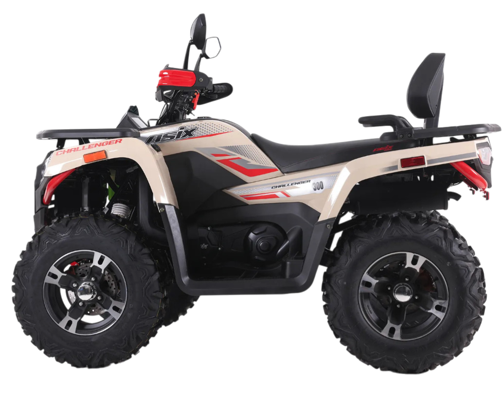 ASIX Challenger 300 to quad użytkowy z homologacją drogową jako ciągnik rolniczy (2 osoby). Model wyposażony jest w markowy, chłodzony cieczą silnik LONCIN o pojemności 270 cm³, który zapewnia odpowiednią moc do pracy w gospodarstwie oraz jazdy terenowej. Napęd przekazywany jest przez wał kardana, co zwiększa trwałość układu i ogranicza konieczność obsługi serwisowej.