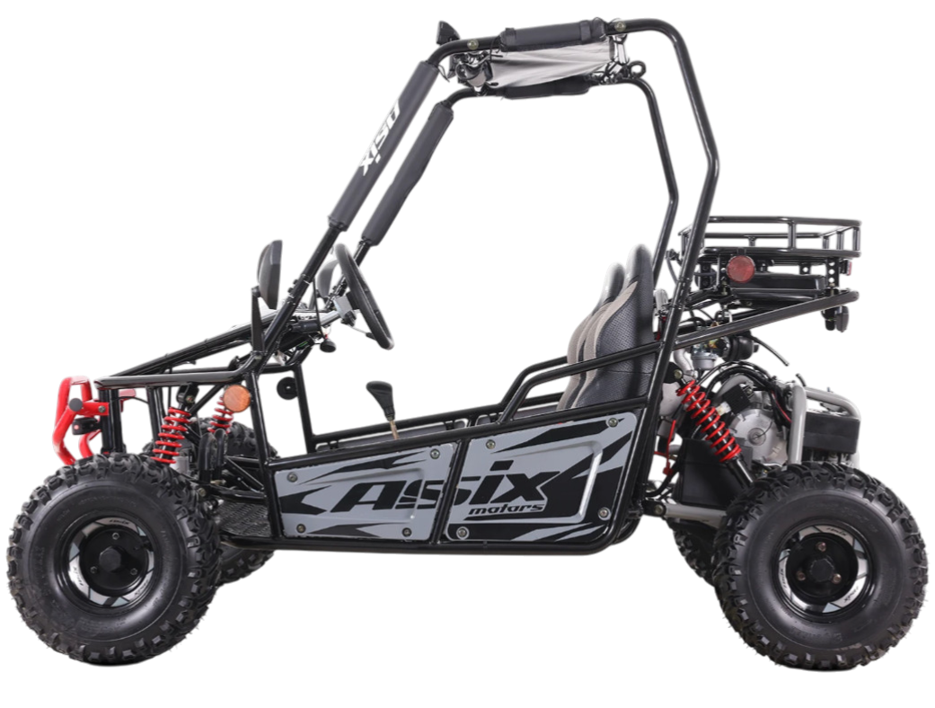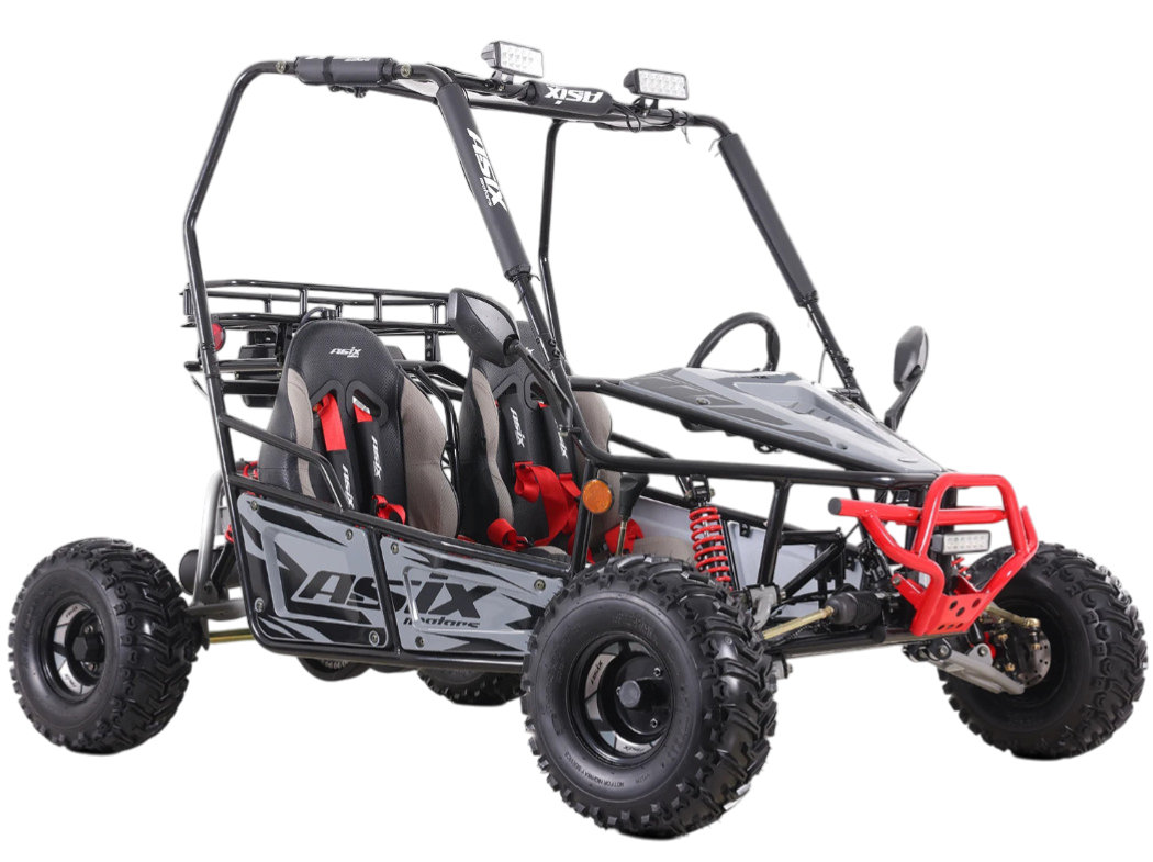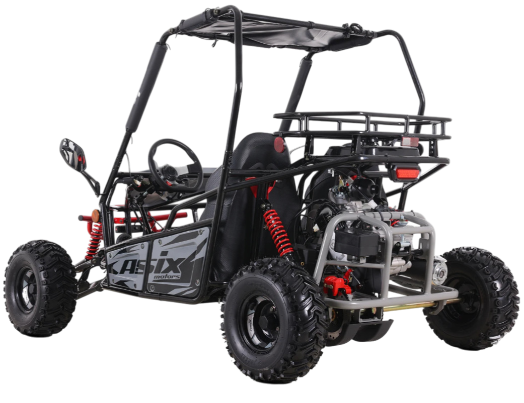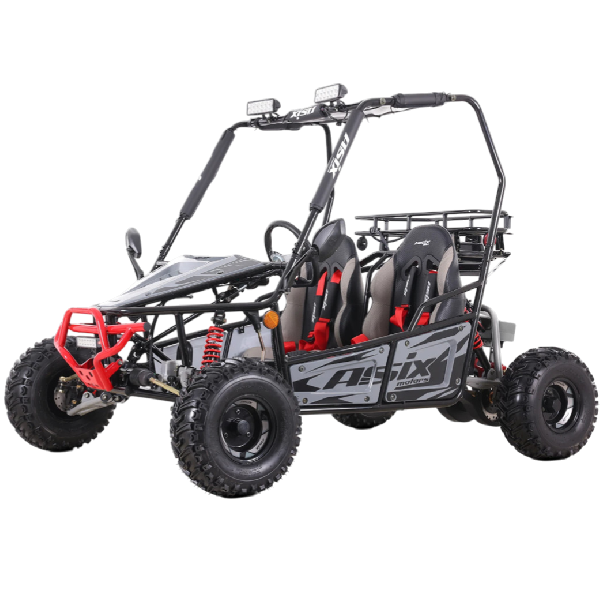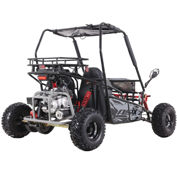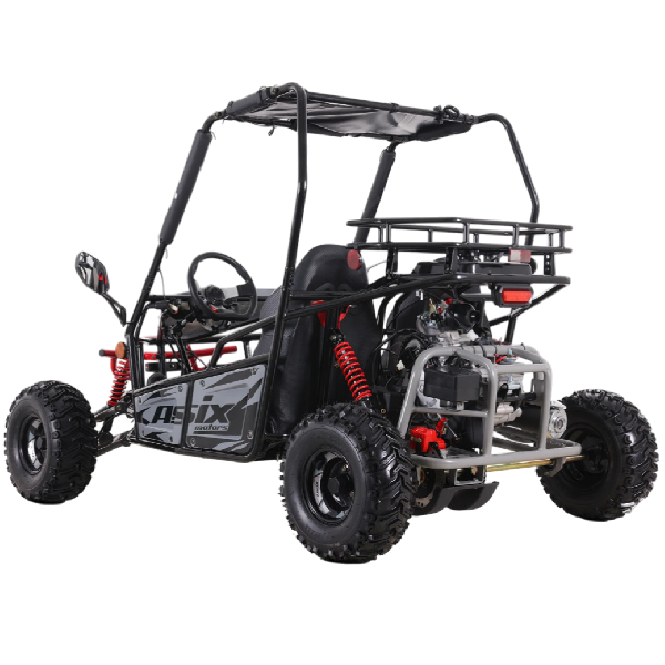 Konstrukcja pojazdu zapewnia stabilność oraz odpowiedni poziom bezpieczeństwa dla młodszych użytkowników. BUGGY 125 sprawdzi się zarówno podczas rekreacyjnej jazdy w terenie, jak i nauki podstaw prowadzenia pojazdu.