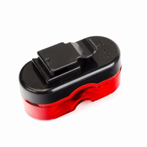 Lampa tylna , swiatlo widoczne na odleglosc 500m. Posiada uchwyt do mocowania na rure podsiodlowa. Wyposazona w dwie diody LED. Dolaczone baterie
