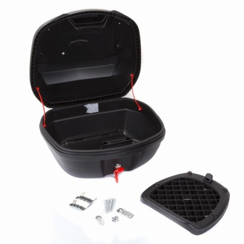 Sredni kufer nadajacy sie do kazdego skutera jak i motocykla. Kufer ma bardzo praktyczne rozmiary a jakosc wykonania z powodzeniem konkuruje z kuframi topowych producentów. Cechy: . Pojemnosc: 32 litrów . Wymiary (dl./szer./wys.): 47x42x31 cm . Mies
